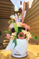 Bright tones of garden roses, carnations, lilies and playful accents create a joyful composition that instantly changes the atmosphere around it. Every flower brings its own note — and together they form a melody of happiness.
